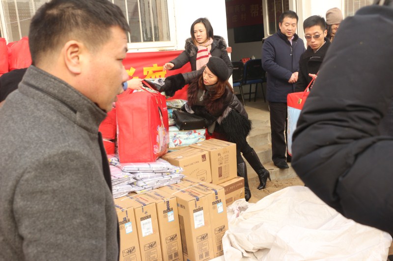 发动商会会员企业组成了20个帮扶工作组,每个帮扶组由5个企业组成,与村庄生活困难家庭结成帮扶对子。在春节前夕为困难家庭送去了电视机、电饭锅,也有棉衣、被褥、桌椅,还有米、面、油等物品,